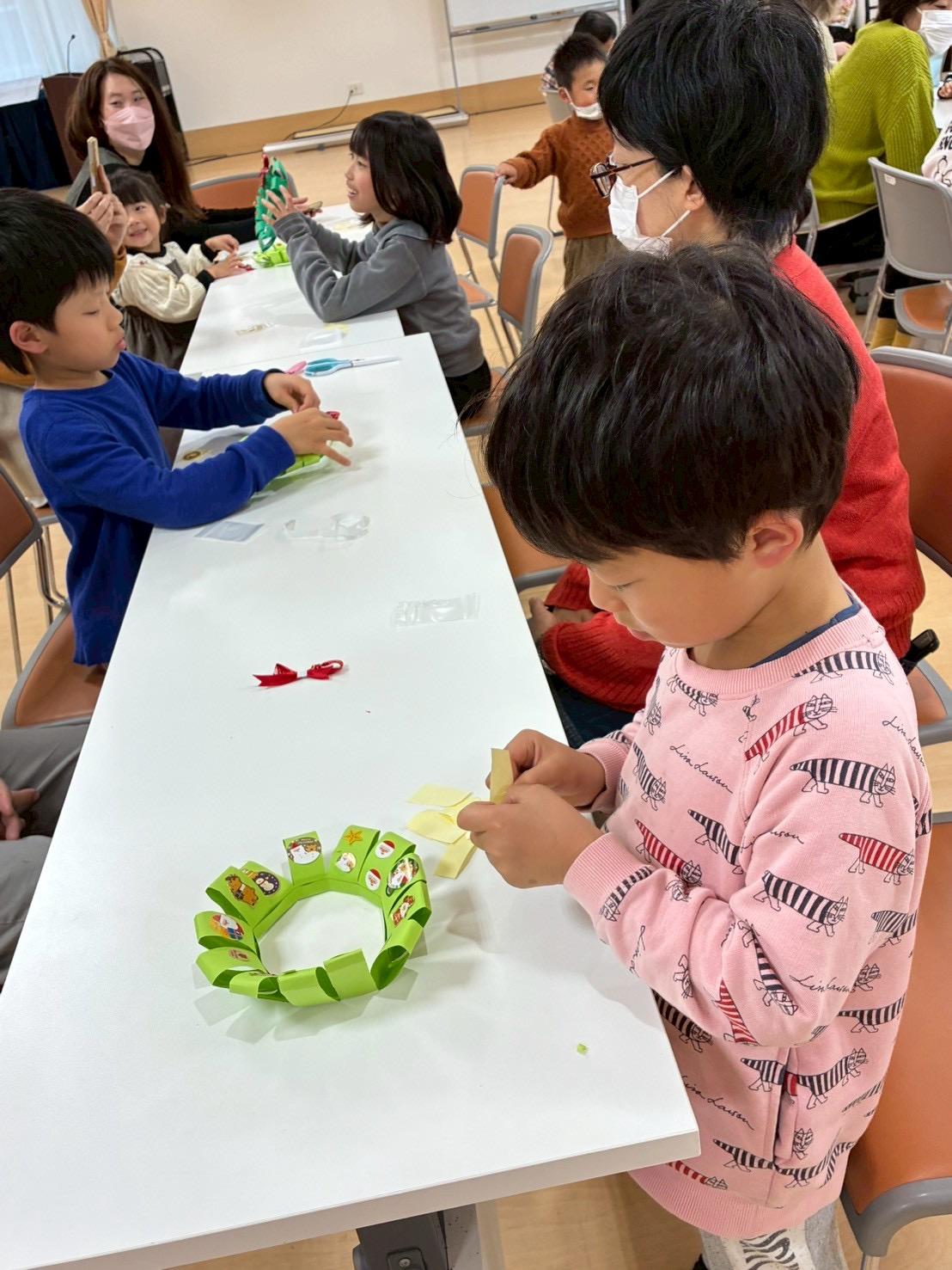 可愛いシールを貼り、みんな想い想いの手作りリースができました♪