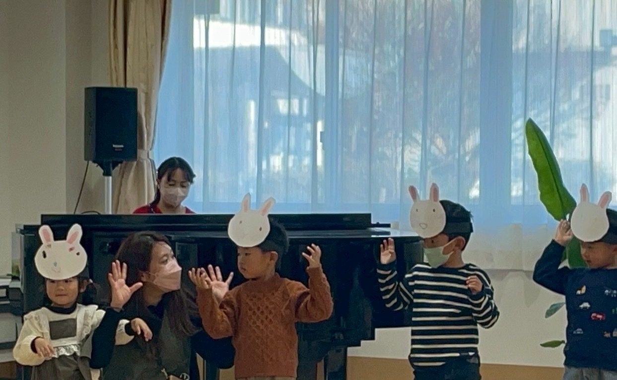 「うさぎ野原のクリスマス」の曲に合わせてリトミックダンスをしました。